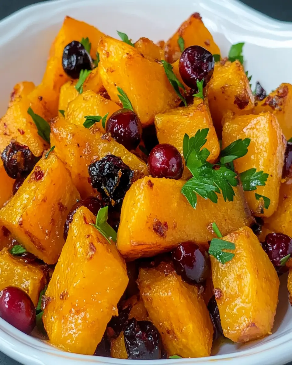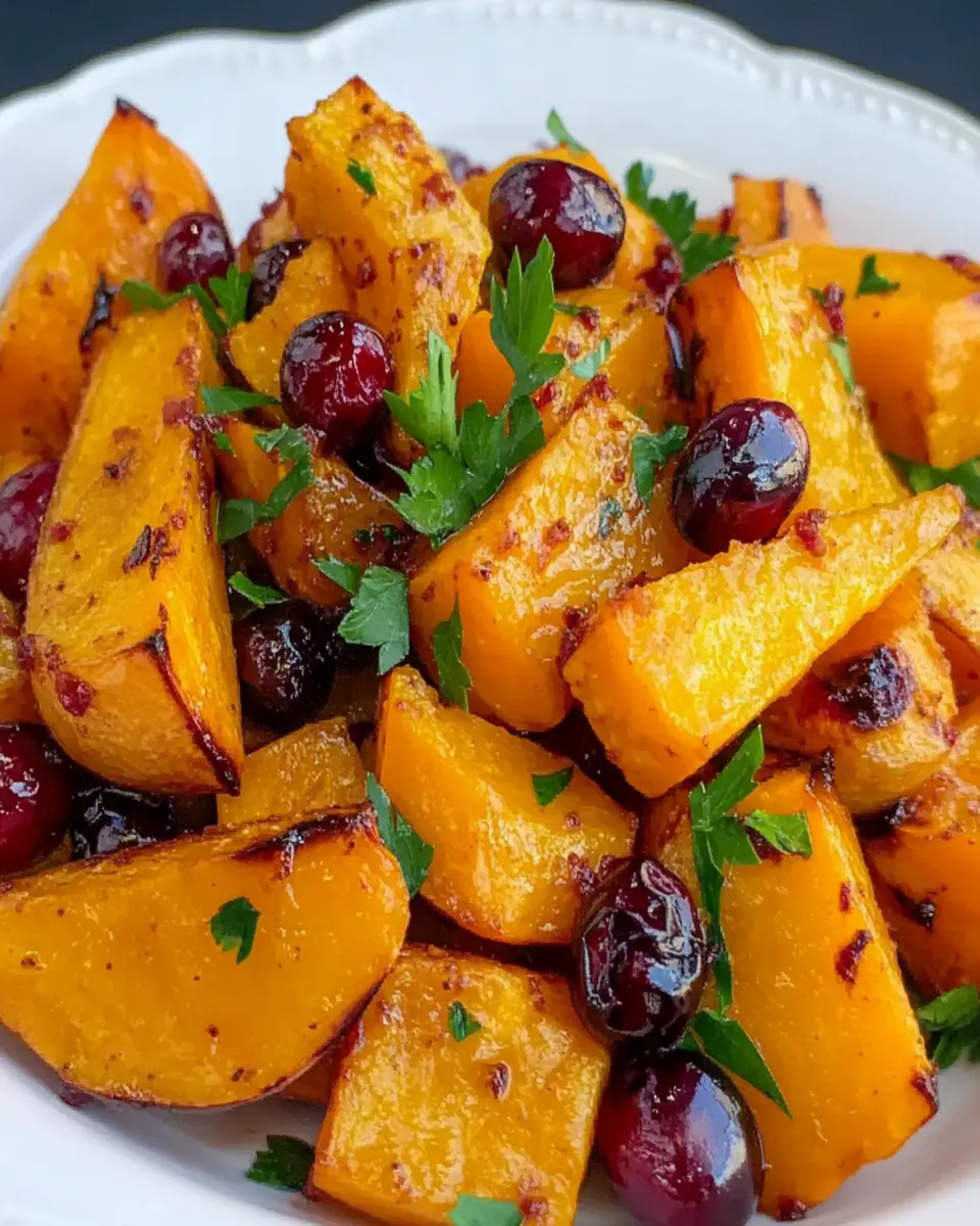 These bright, tart berries add a pop of color and a refreshing contrast to the sweetness of the squash. Their vibrant flavor enhances the overall dish, making it a perfect fall complement.