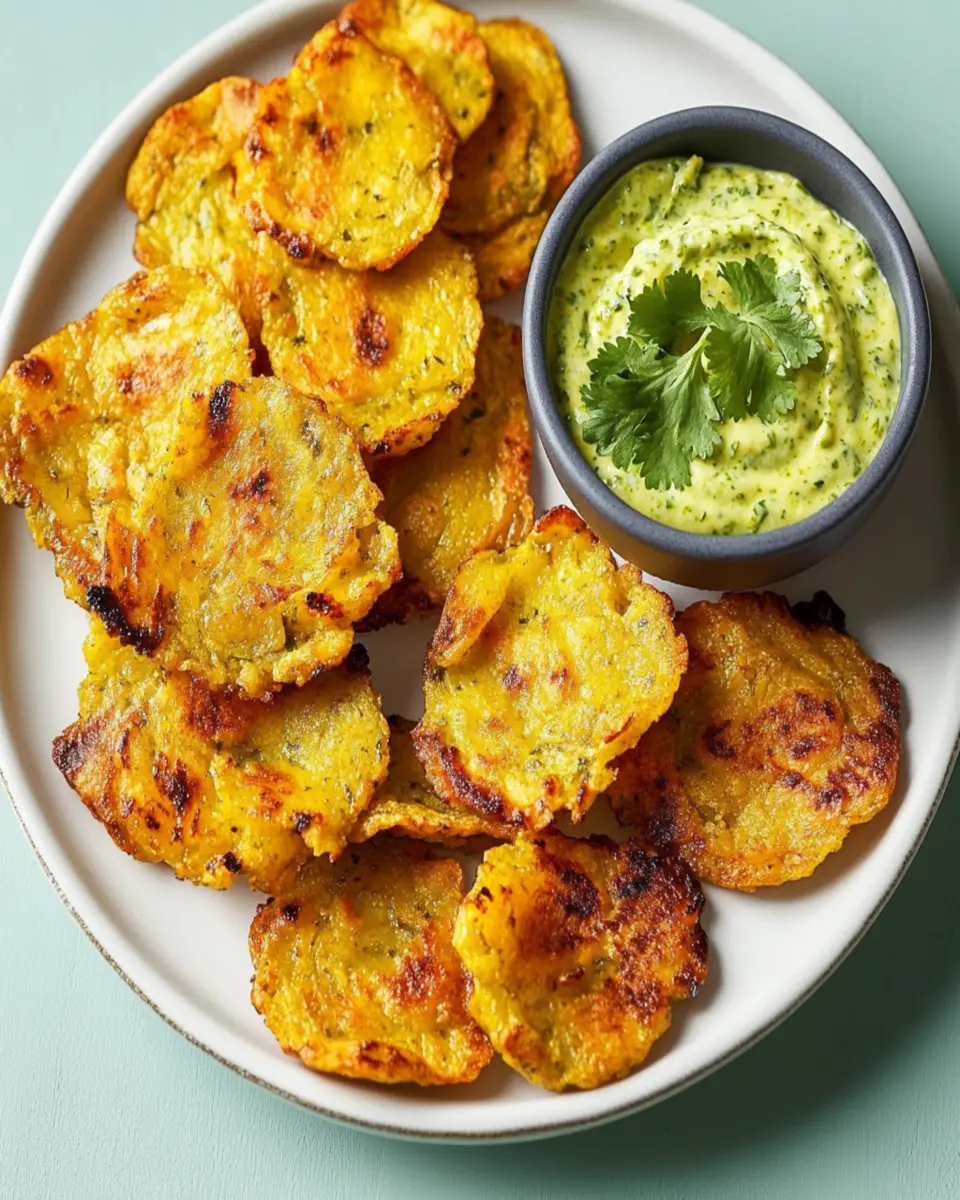 In conclusion, Air Fryer Tostones with Cilantro Dip are a delicious and healthy option for anyone seeking a quick snack or appetizer. With their crispy texture and zesty flavor, these tostones are sure to impress friends and family alike. Perfect for busy young professionals, this dish combines ease of preparation with delightful taste. Don’t hesitate to cook, save, or share this recipe for a delightful culinary experience!