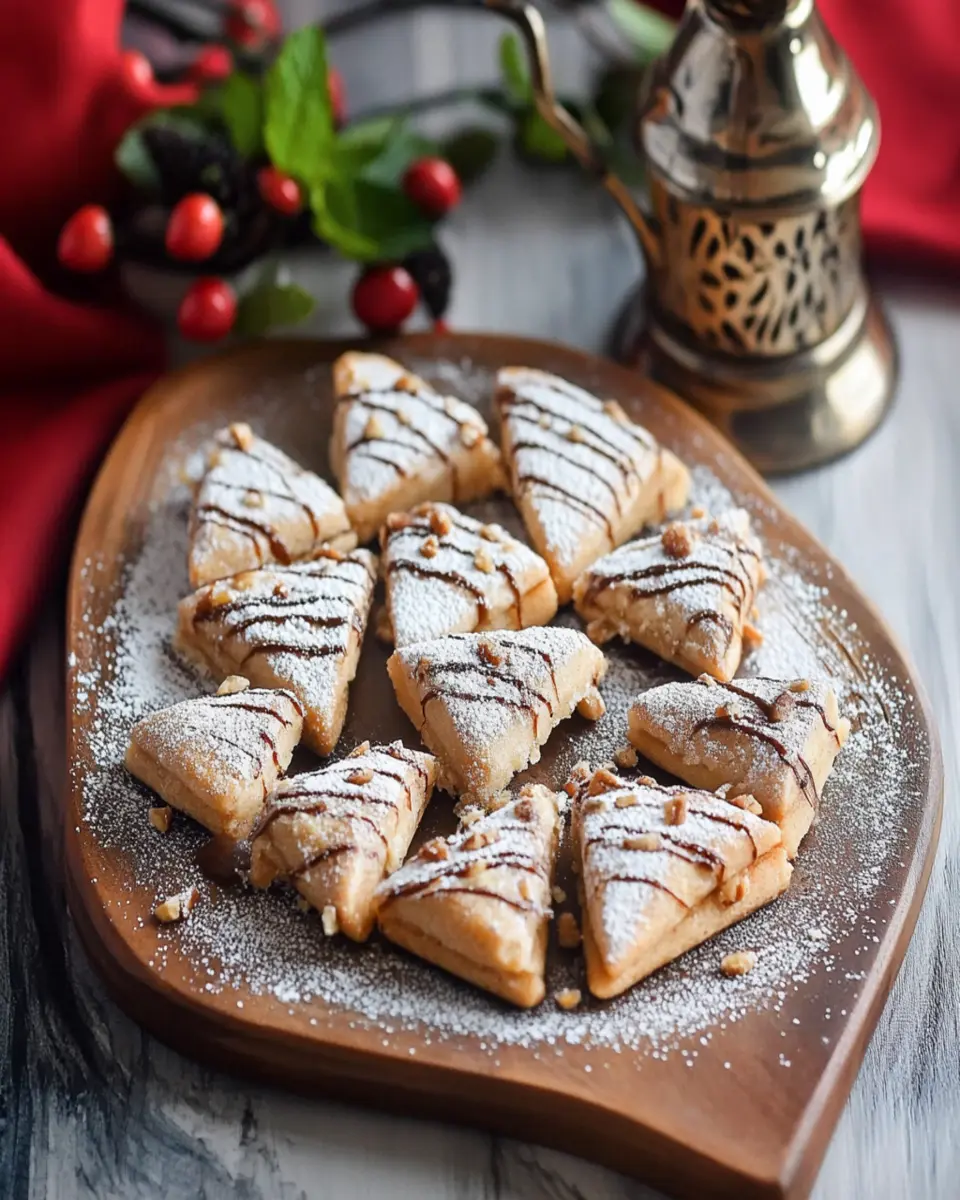Amaretto Triangles make a delightful addition to any gathering, especially when paired with beverages. Consider serving them with a cup of freshly brewed coffee or a rich espresso to enhance the dessert’s nutty flavors. For a more festive touch, serve them alongside a glass of dessert wine or even a splash of Amaretto liqueur for those who enjoy a sweeter sip.