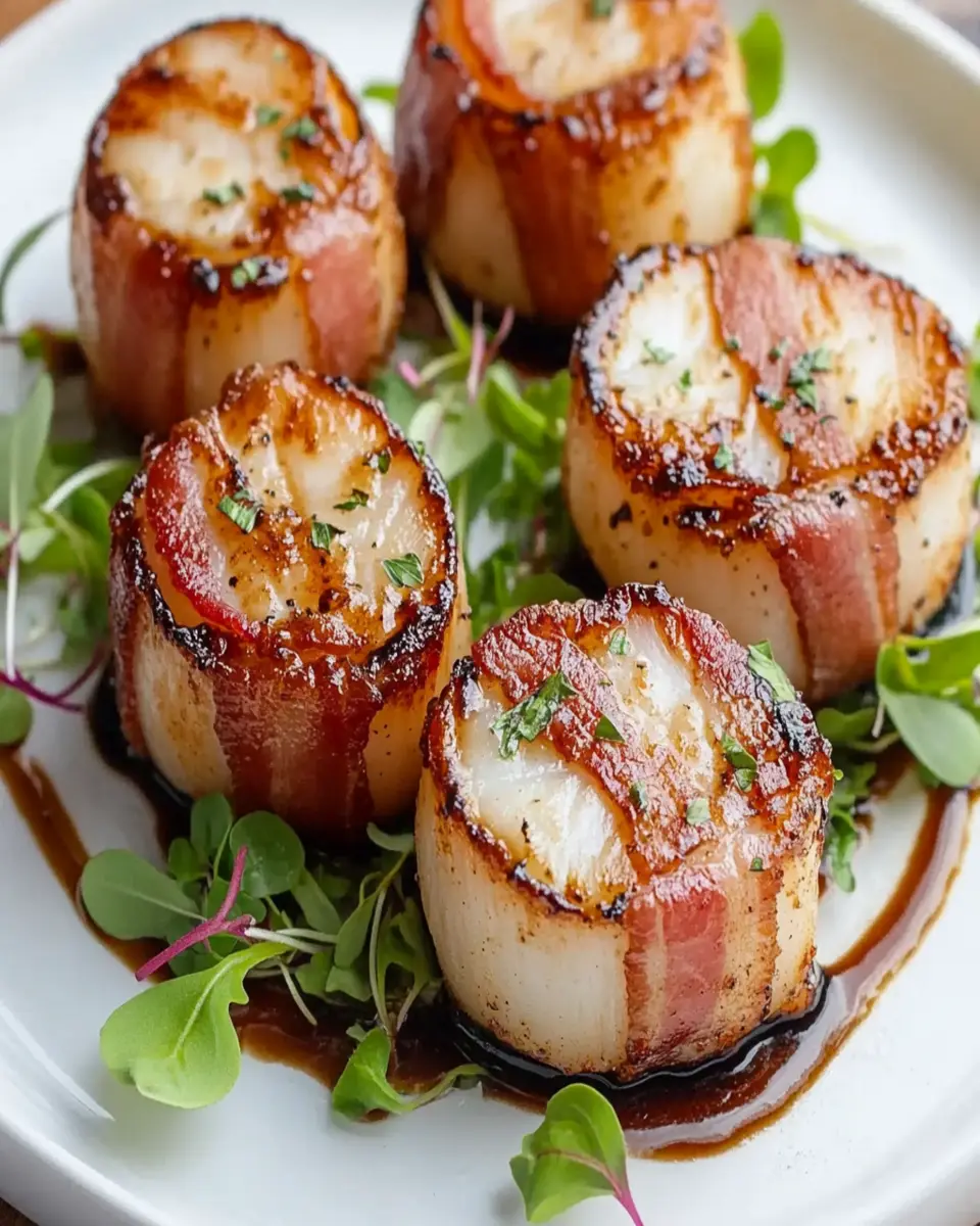 Adding a sprinkle of lemon or orange zest before baking or grilling can brighten the dish significantly. The citrus notes will contrast beautifully with the savory bacon and sweet scallops, making each bite even more refreshing.