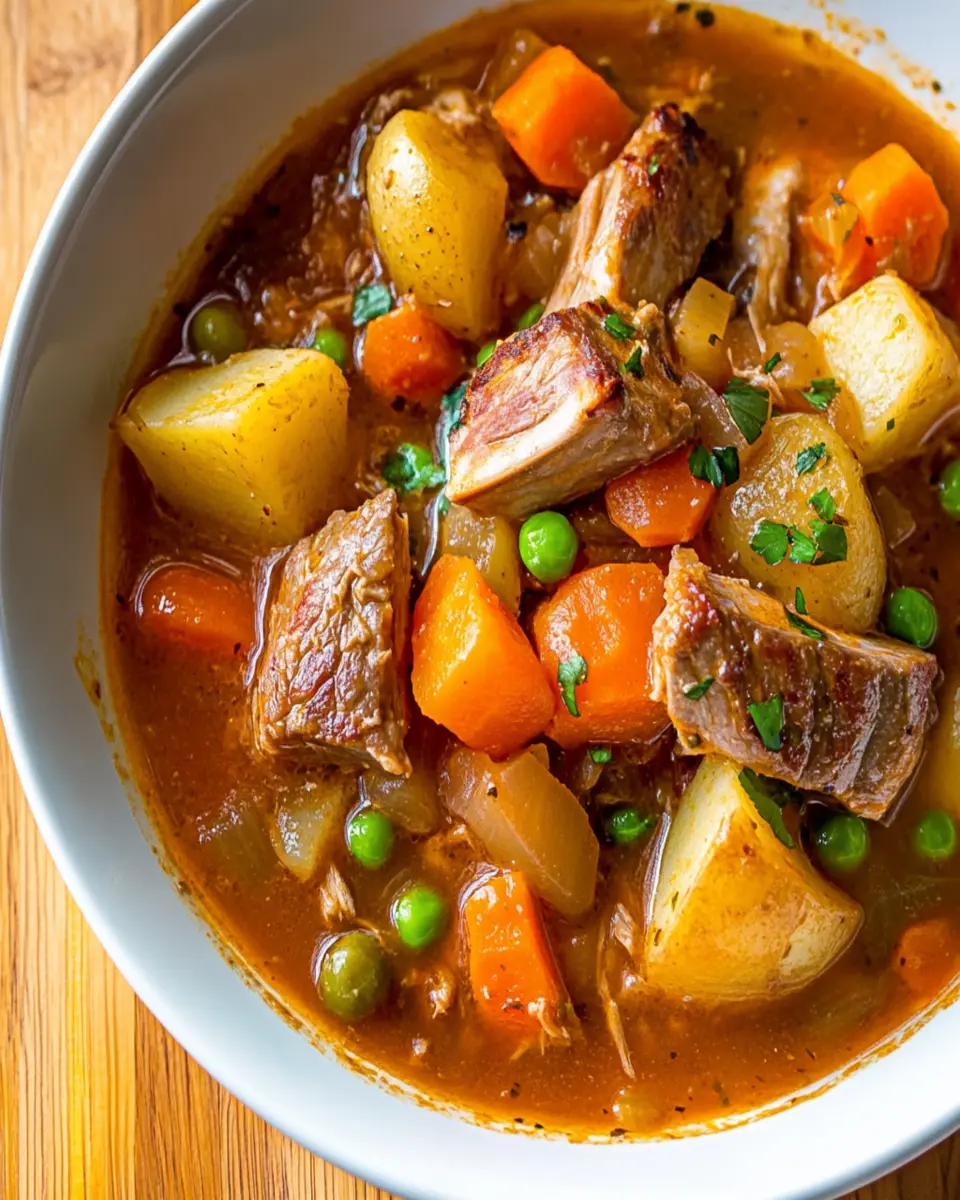 A hearty and flavorful Irish lamb stew with tender chunks of lamb, root vegetables, and a rich broth.