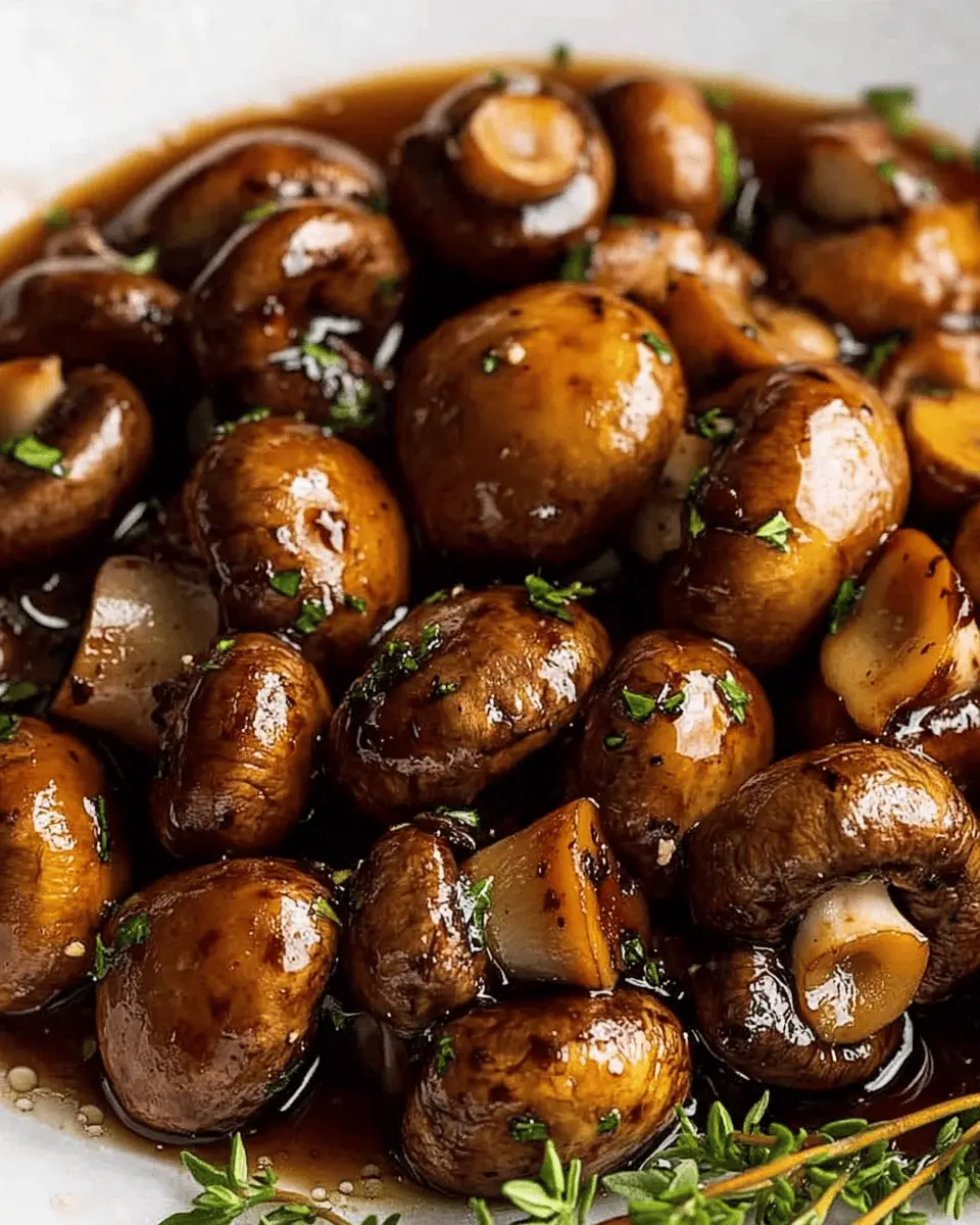 Delicious balsamic marinated mushrooms, perfect for salads, appetizers, or as a side dish.