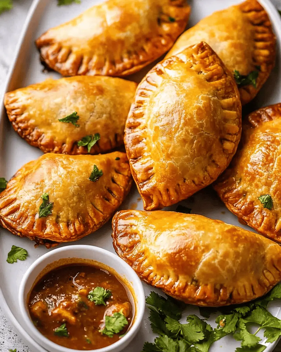 Present your beef empanadas on a large platter, garnished with fresh herbs or citrus wedges for a vibrant touch. This not only makes for an appealing presentation but also invites guests to dig in and enjoy your culinary creation.