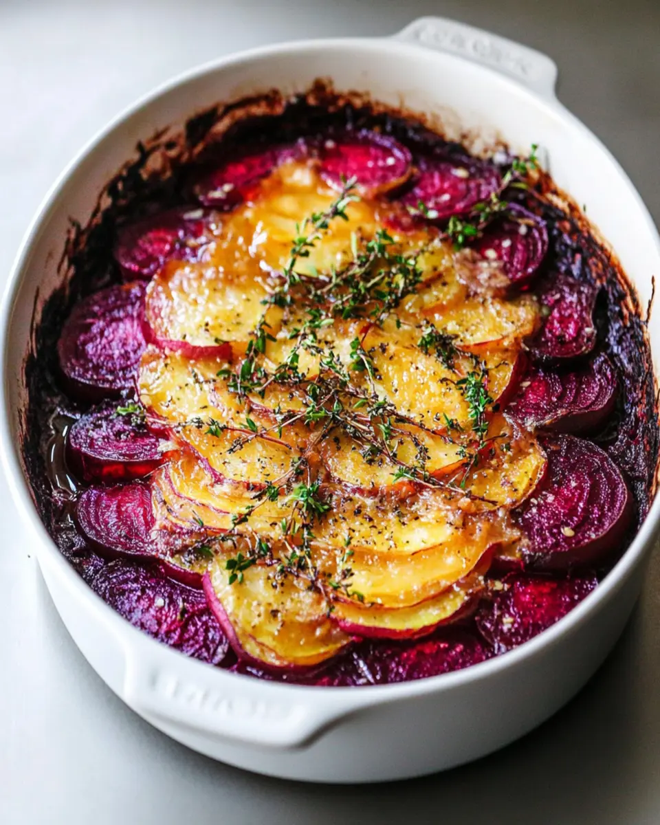 Beets (2 medium): These vibrant root vegetables are rich in vitamins and antioxidants, providing not only a beautiful color but also a natural sweetness that enhances the gratin’s flavor.
