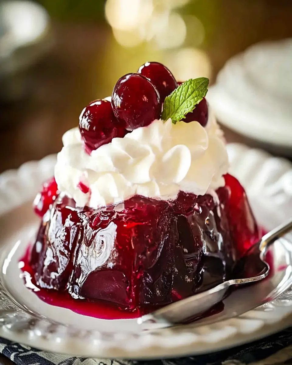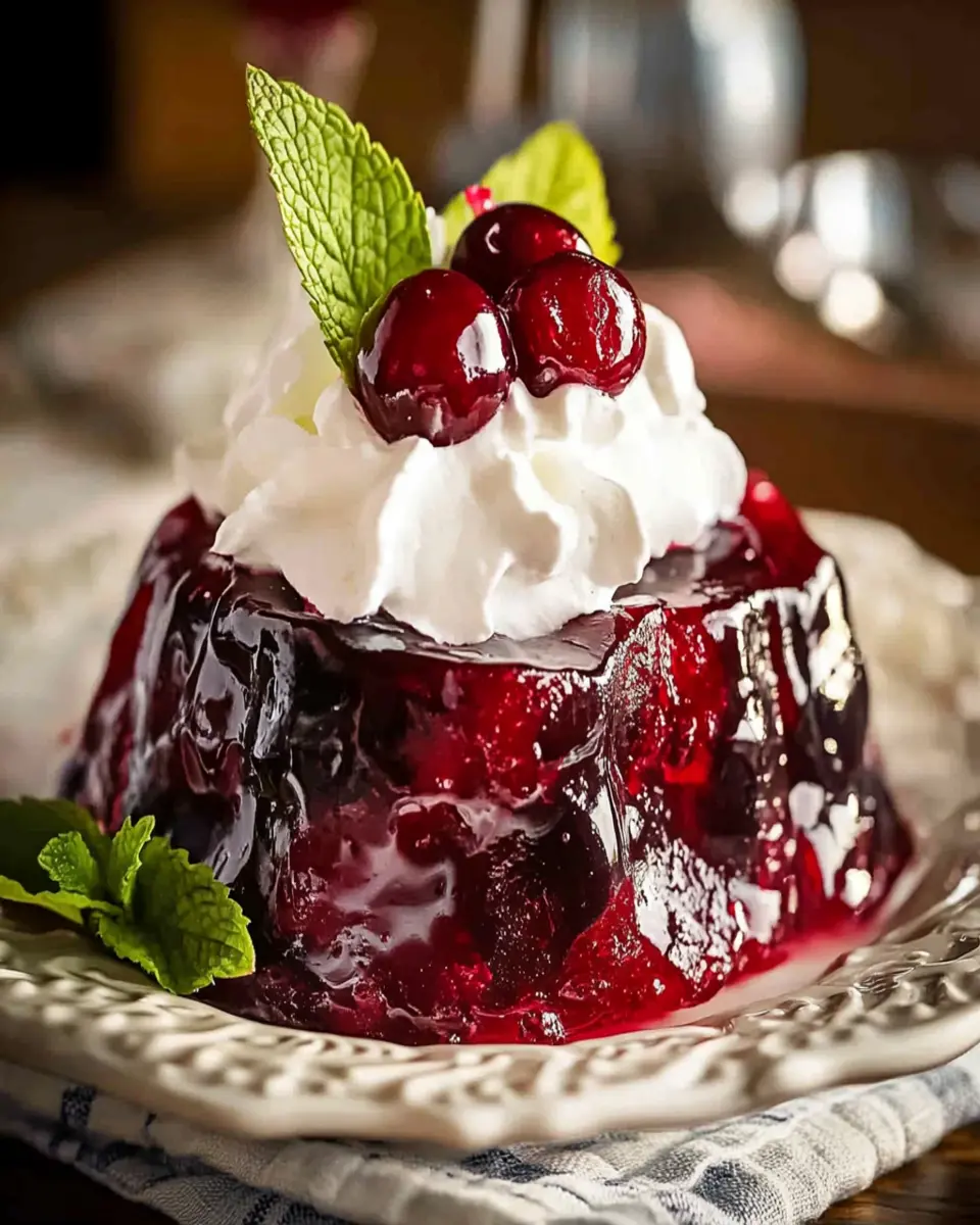 If you’re hosting a dessert buffet, Bing Cherry Jello Salad can be a colorful and appealing option. It can be served in individual cups or bowls, making it easy for guests to help themselves. You can also garnish each serving with a sprig of mint or a few extra cherries for an eye-catching presentation.