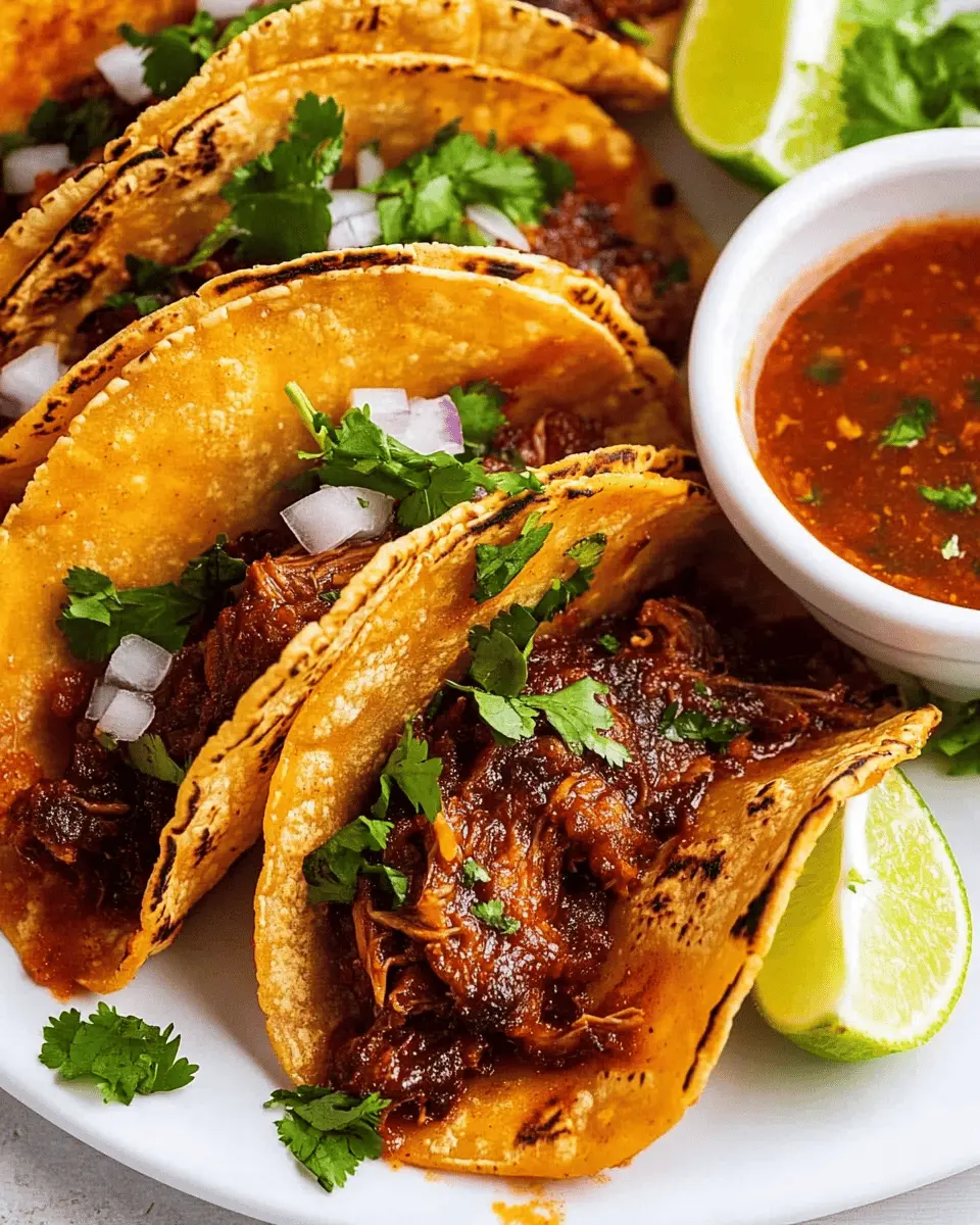 For a visually appealing presentation, serve your birria tacos on a colorful platter with small bowls of various toppings. This not only makes for an inviting display but also allows guests to customize their tacos to their liking. Plus, serving with a small cup of the rich broth for dipping makes the experience even more enjoyable!