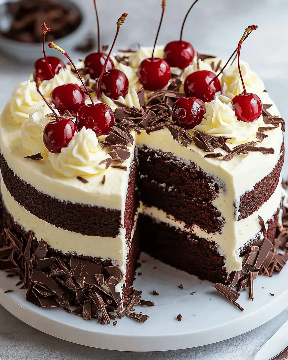 Black Forest Cake is not just a dessert; it’s an experience that brings together rich flavors and beautiful presentation. With its layers of moist chocolate, luscious whipped cream, and tart cherries, this classic cake is perfect for any occasion, whether it’s a birthday, holiday, or simply a treat for yourself.