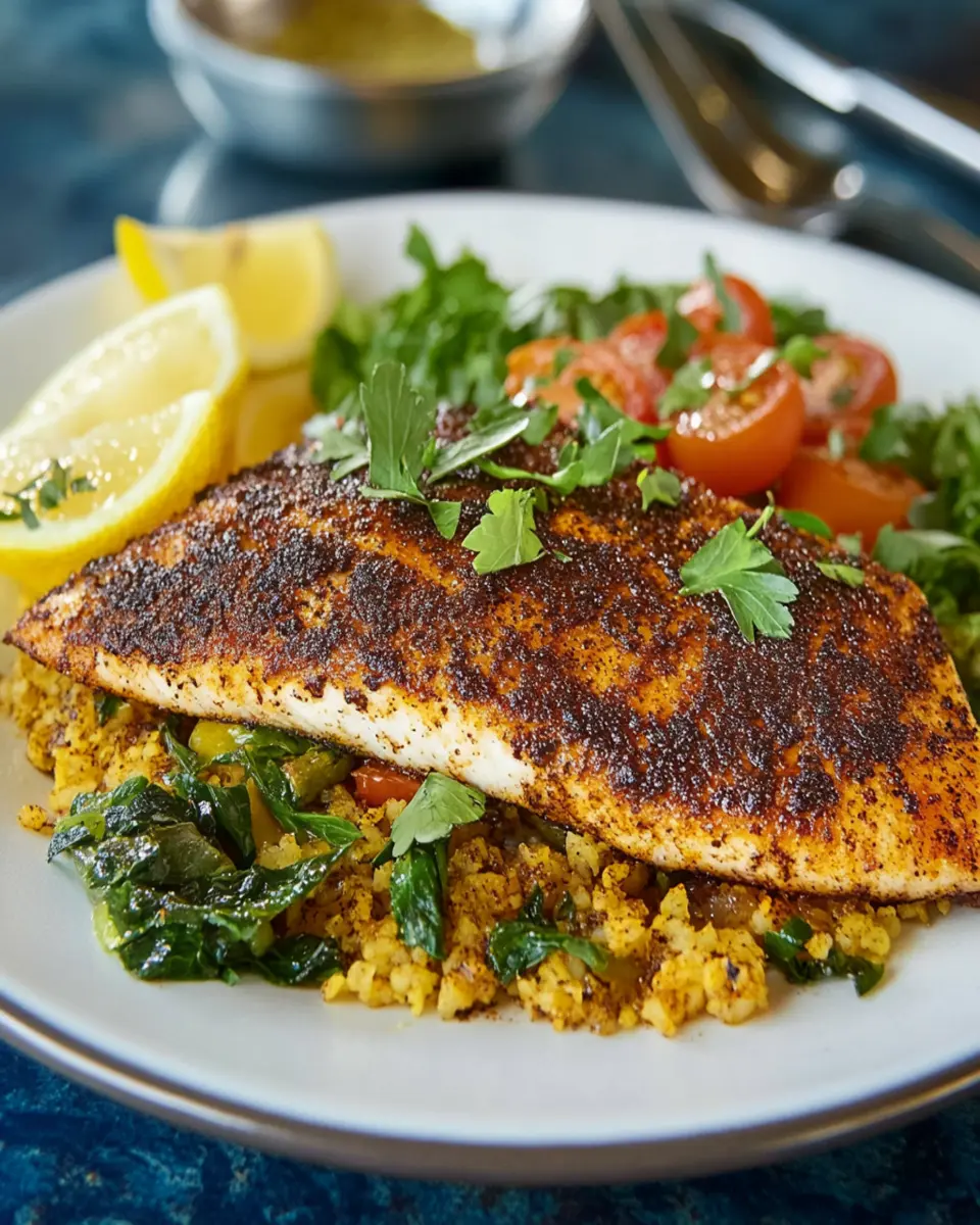 Deliciously seasoned blackened fish with a crispy exterior and moist inside, perfect for any seafood lover.