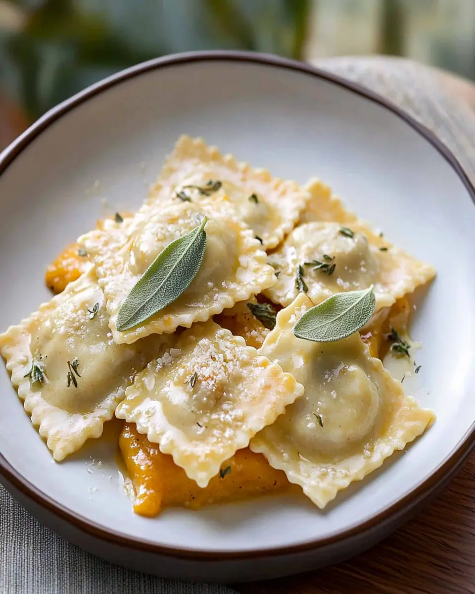 Butternut squash is the star of this dish, offering a naturally sweet and nutty flavor that complements the creamy filling beautifully. Roasting it enhances its sweetness and gives the ravioli a rich taste.