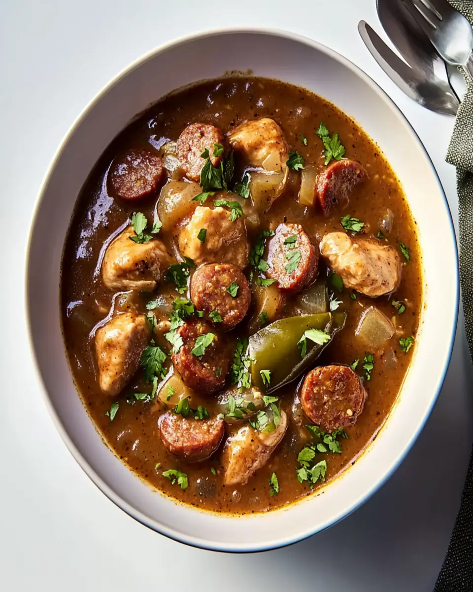 A flavorful and hearty Cajun dish made with chicken, sausage, and a rich roux.