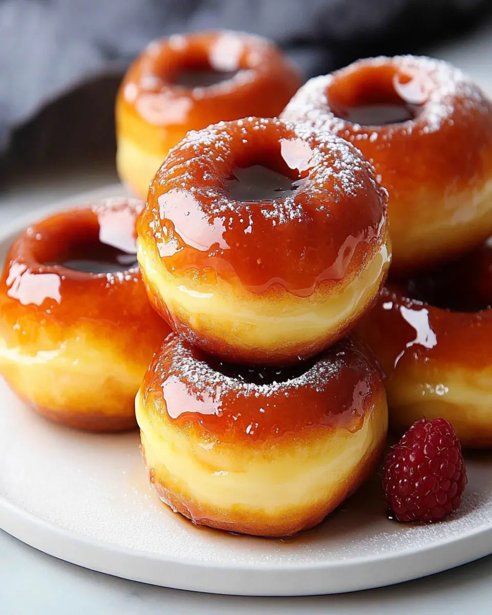 Delicious doughnuts filled with creamy custard and topped with a caramelized sugar crust.