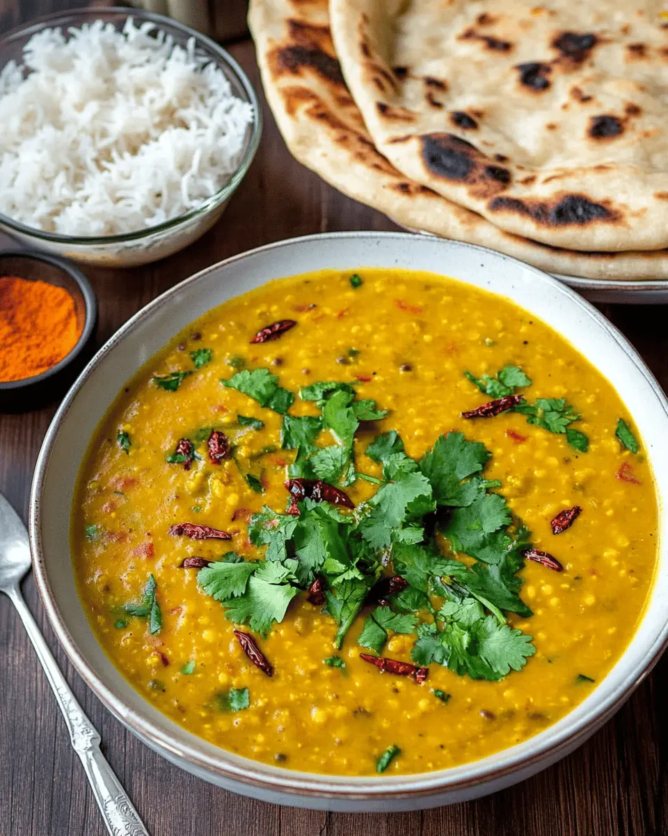 Dal can be served with rice or naan for a complete meal. It’s also great with a side of yogurt or a fresh salad to balance the flavors. Don’t forget to garnish with fresh cilantro for an extra touch!