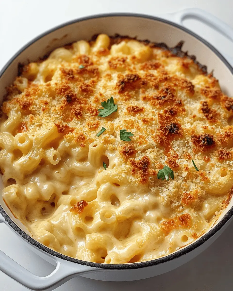 Breadcrumbs provide a delightful crispy topping that contrasts beautifully with the creamy macaroni and cheese underneath.