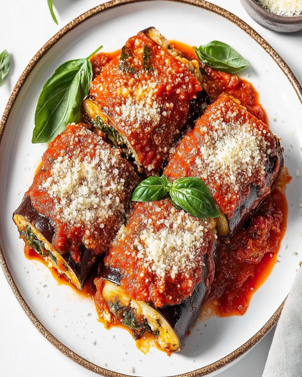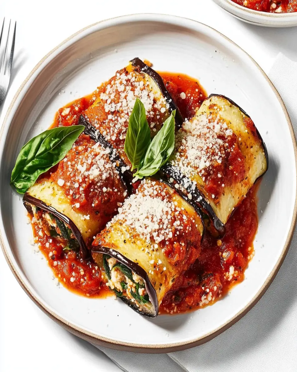 For a Mediterranean twist, consider adding fresh spinach and crumbled feta cheese to the traditional ricotta filling. This not only enhances the flavor but also adds a nutritious boost, making the dish even more delightful. The combination of creamy feta and vibrant spinach pairs beautifully with the eggplant.