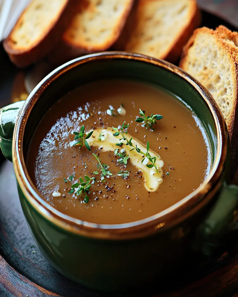 The French-style shallot soup recipe is not only delicious on its own but also shines when paired with complementary sides. A warm, crusty baguette or a slice of rustic sourdough bread is perfect for dipping, enhancing the experience with each bite. Consider serving it with a simple green salad dressed with a light vinaigrette to balance the richness of the soup.