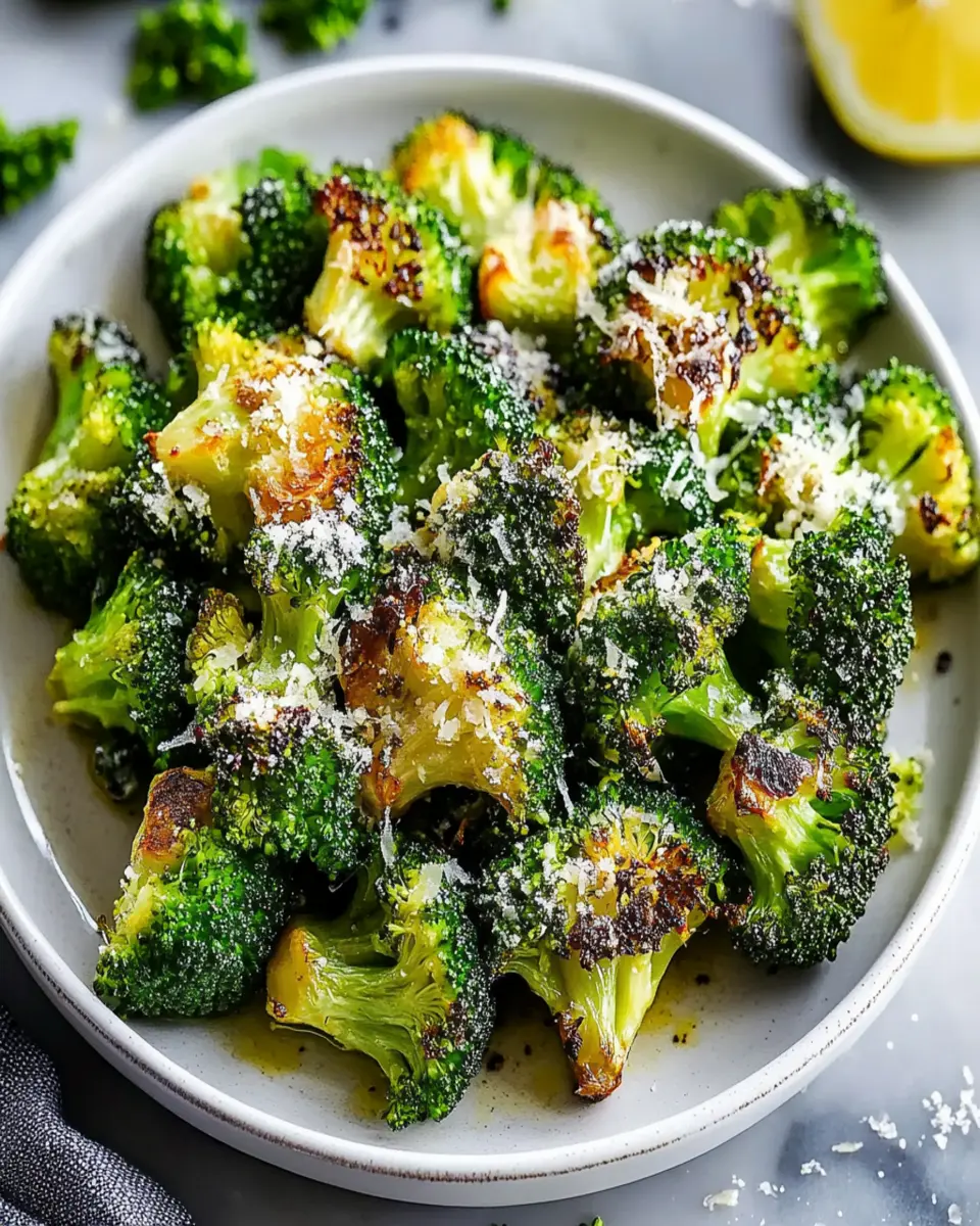 Making Garlic Parmesan Roasted Broccoli is simple! Start by preheating your oven to 425°F (220°C). Toss broccoli florets with olive oil, minced garlic, salt, and pepper until well coated, then spread them on a baking sheet. Roast for 20-25 minutes until tender and slightly charred, then sprinkle with parmesan cheese before serving.