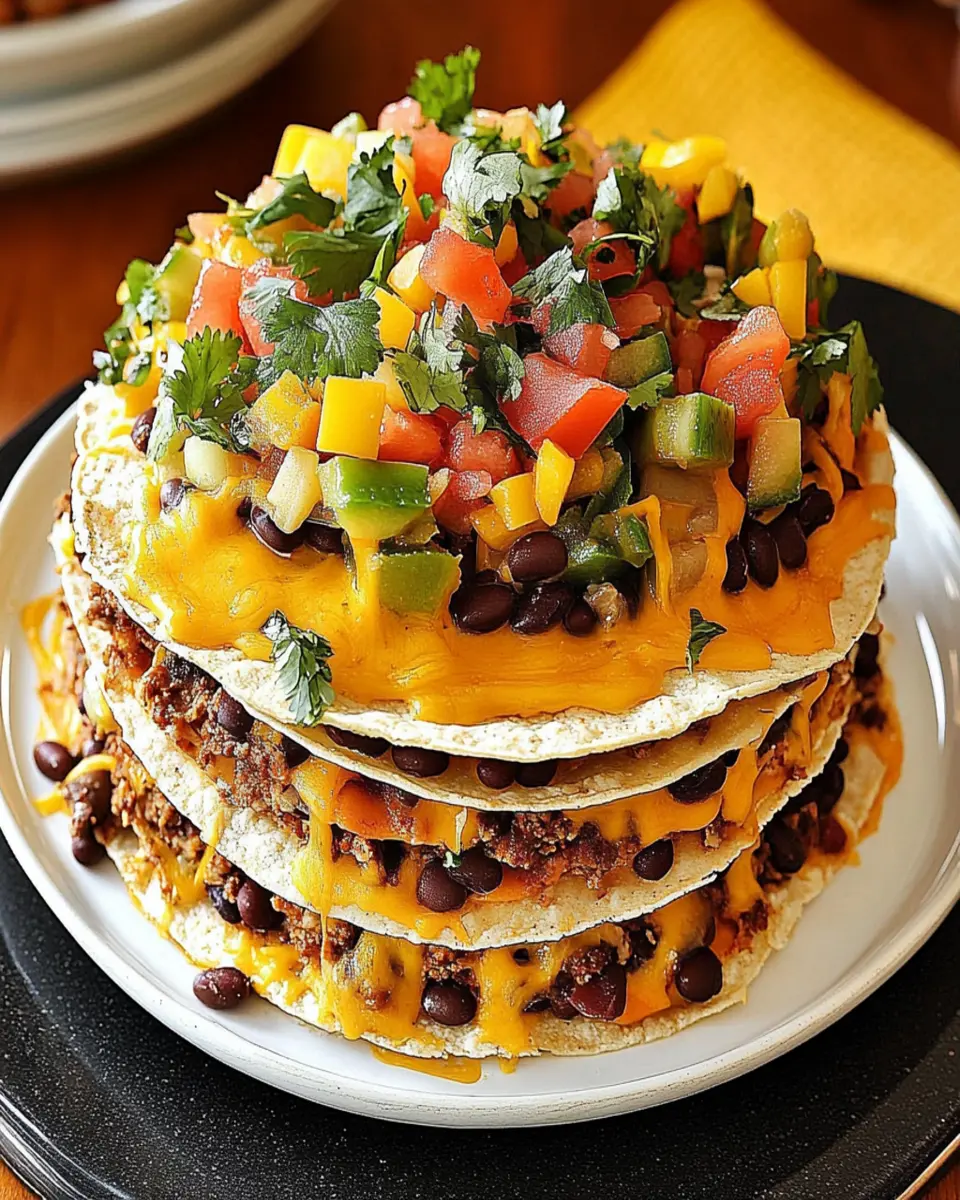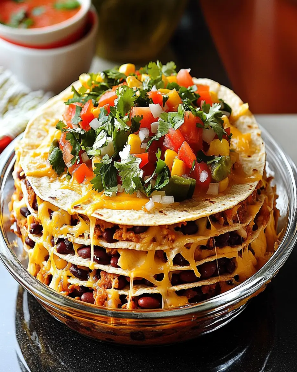This layered creation is not only visually appealing but also packed with nutrition, making it a smart choice for health-conscious individuals. Each serving delivers a balanced mix of protein, fiber, and essential nutrients, ensuring you can enjoy your meal guilt-free. So why wait? Dive into the world of Layered Tortilla Pie and experience the joy of cooking a meal that’s as rewarding to prepare as it is to eat.