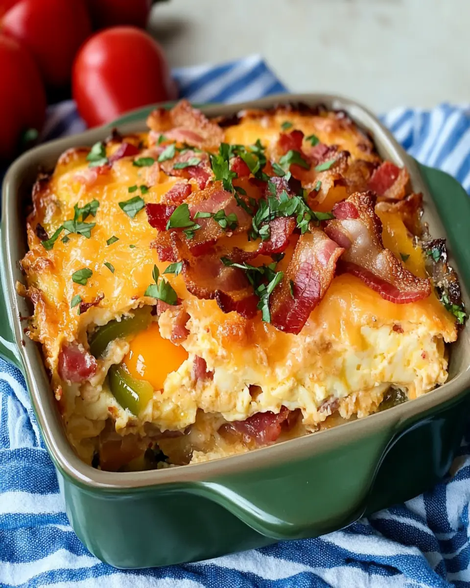 This Loaded Overnight Breakfast Casserole is not only a crowd-pleaser but also a time-saver, allowing you to enjoy a hearty breakfast with minimal morning effort!