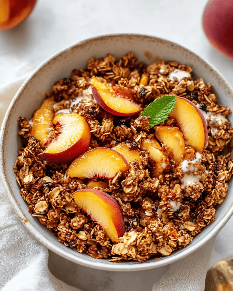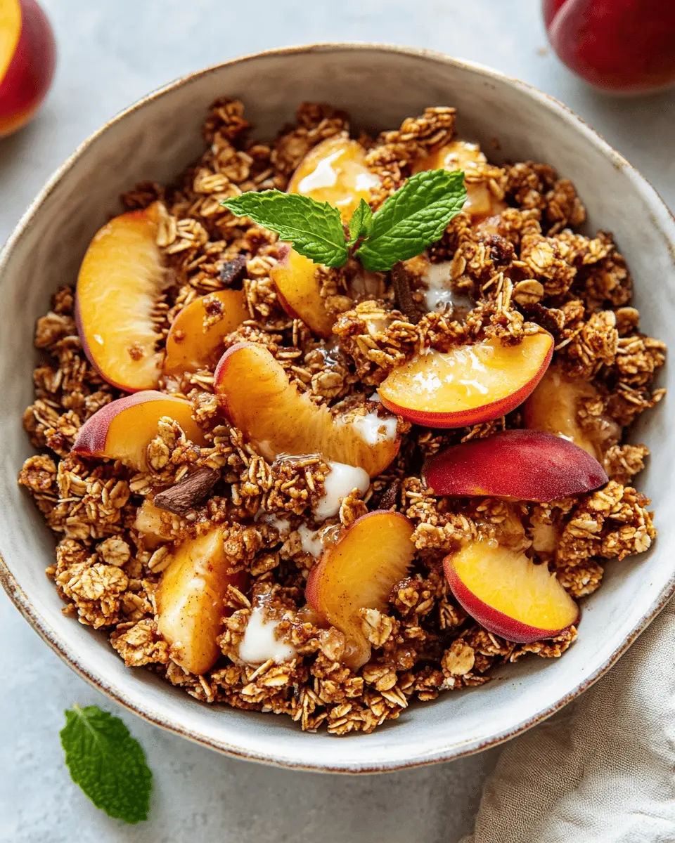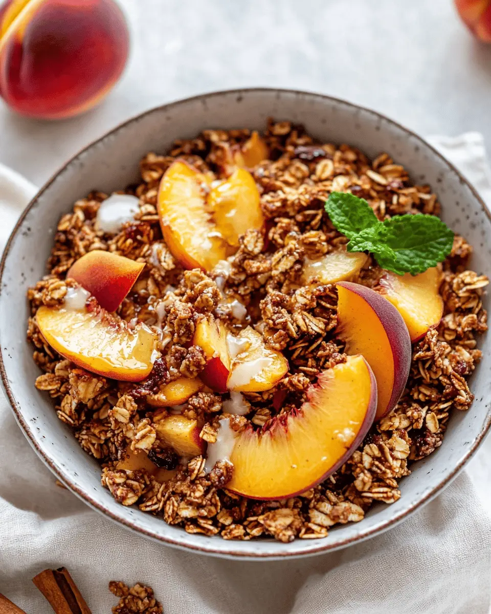 Imagine waking up to the aroma of freshly baked peach cobbler wafting through your kitchen. With Peach Cobbler Granola, you can experience that joy every morning! It’s not only delicious but also packed with wholesome ingredients. The rolled oats provide a hearty base, while the chopped nuts add a satisfying crunch. Dried peaches lend a natural sweetness, and the honey or maple syrup binds everything together, creating clusters that are hard to resist.