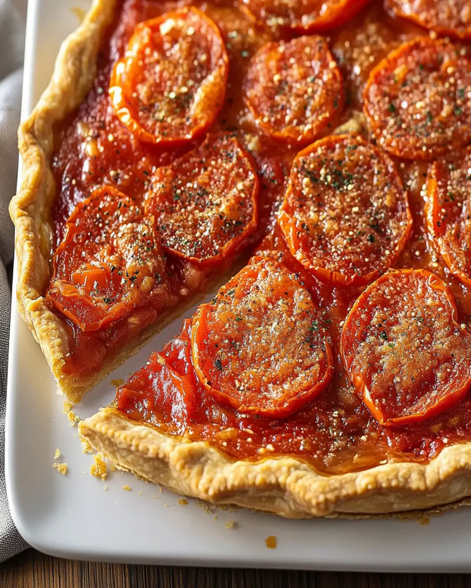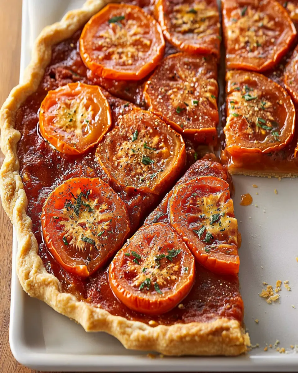 A delicious savory pie featuring a flavorful tomato filling, ideal for summer gatherings or potlucks.