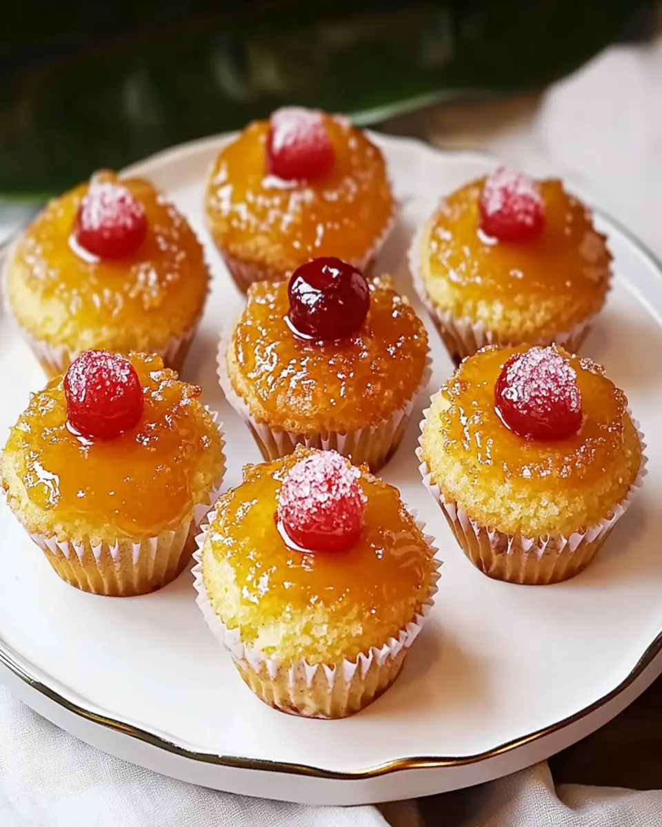 Pineapple Upside Down Cupcakes are a delightful fusion of flavors that bring a tropical twist to your dessert table. With their sweet, moist texture and the caramelized topping of pineapple and cherries, these cupcakes are sure to become a favorite among friends and family.