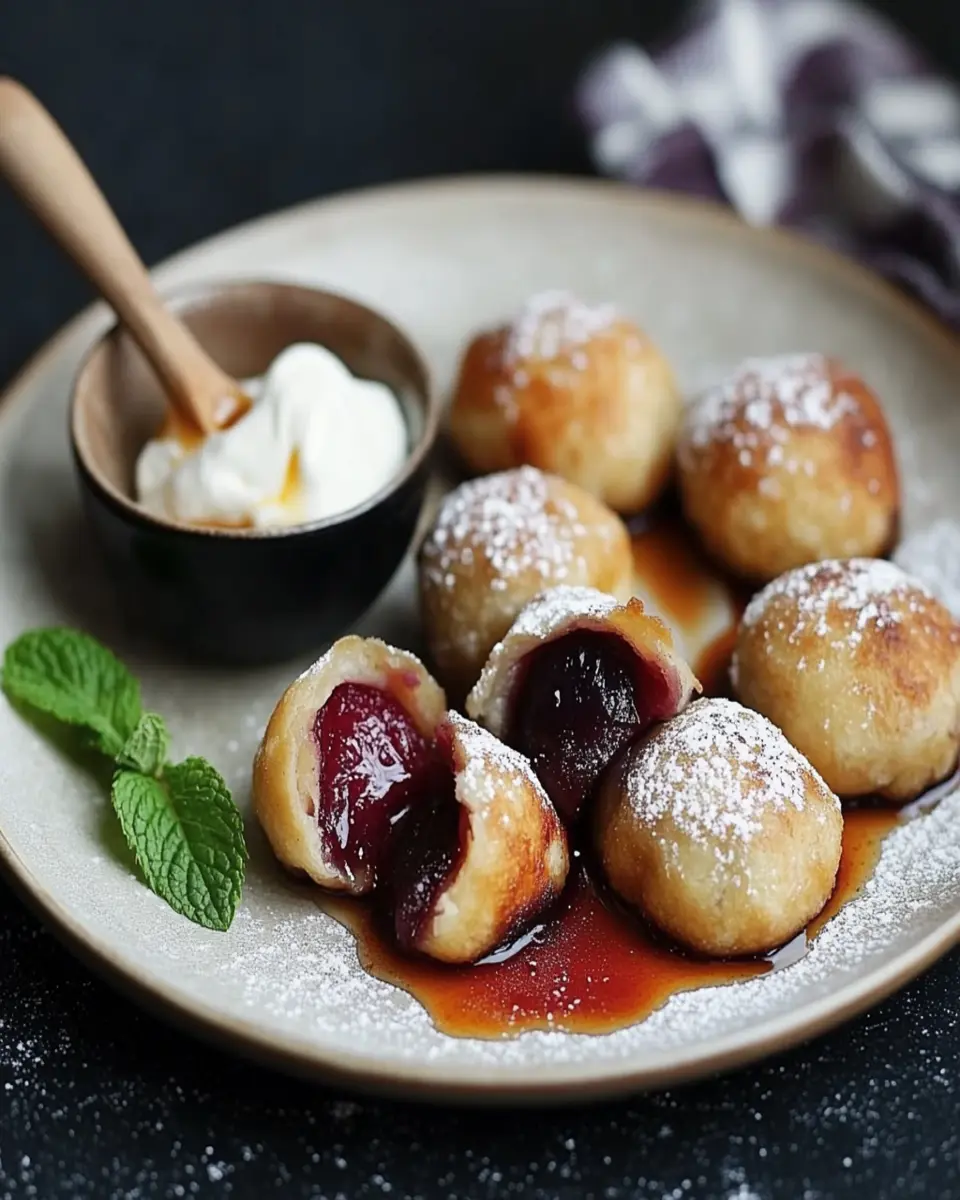 These dumplings can be served warm, coated in toasted breadcrumbs, and topped with powdered sugar for a classic finish. For an indulgent twist, consider pairing them with vanilla ice cream or a dollop of whipped cream to enhance the flavors.