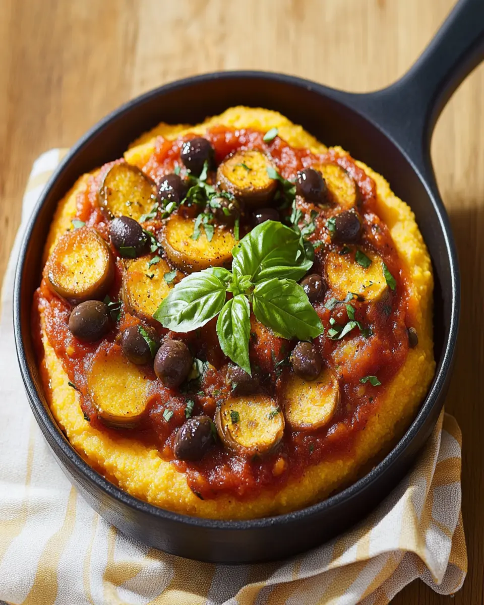 Puttanesca Polenta Bake is a delicious Italian-inspired dish that combines creamy polenta with a rich puttanesca sauce made from crushed tomatoes, olives, and capers. This hearty bake is perfect for those who love flavorful, comforting meals.