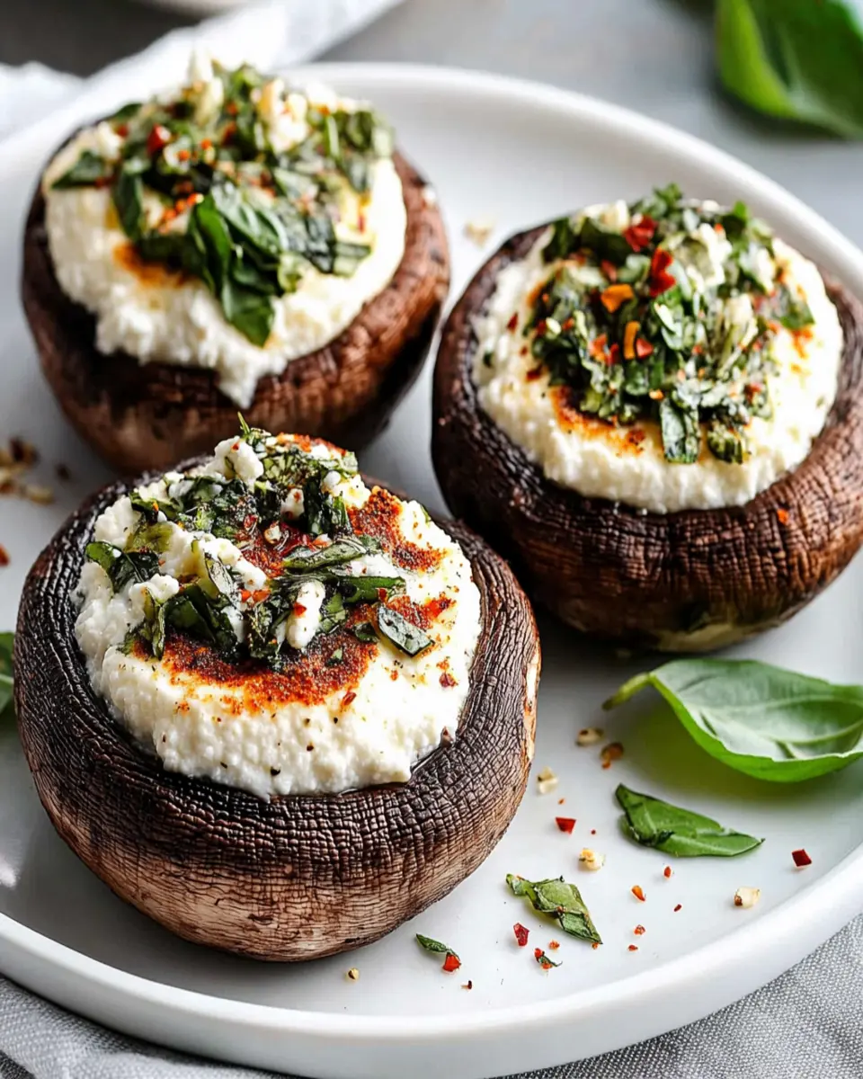 Portobello mushrooms are the star of this dish, providing a hearty, meaty texture that’s perfect for stuffing. Their large caps are ideal for holding the creamy filling, and they add a rich, earthy flavor to each bite.