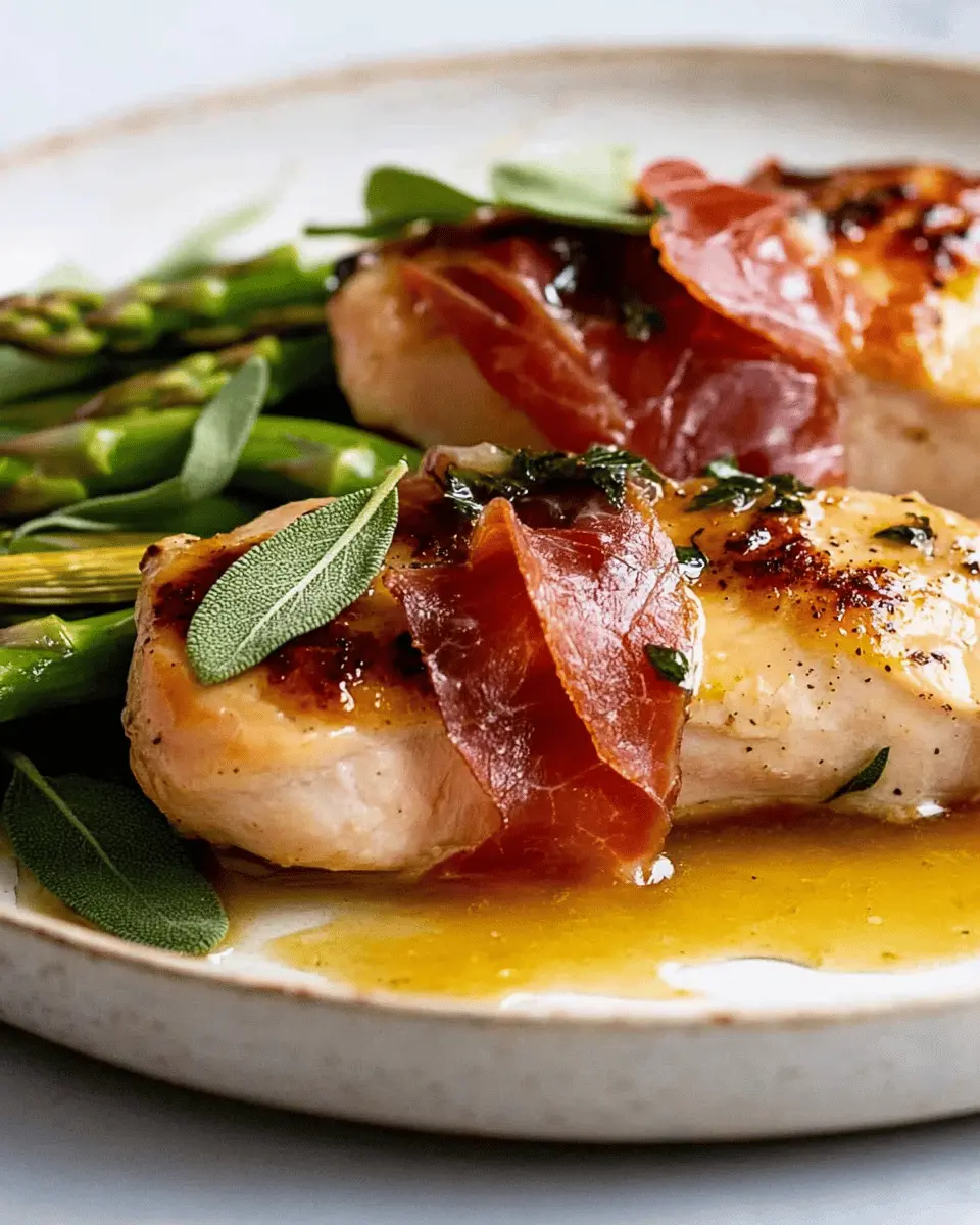 Fresh sage leaves (8): Known for their aromatic qualities, these leaves infuse the dish with a distinctive herbal note that balances the richness of the meat.