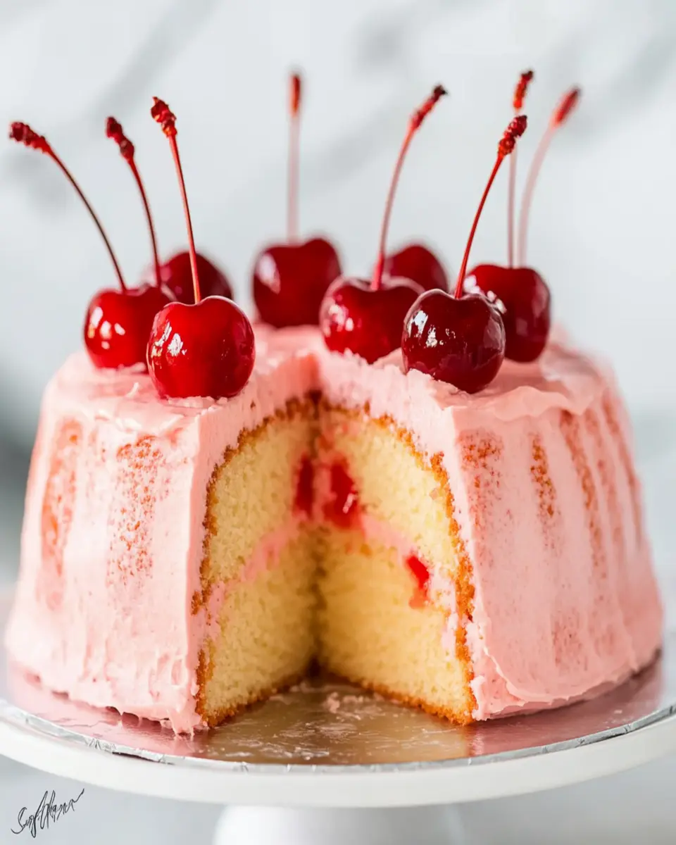 This cake is not just a dessert; it’s a delightful experience that combines the charm of retro recipes with modern baking techniques. Its unique flavor profile, brought to life by the addition of maraschino cherries and cherry soda, makes it a standout choice for gatherings or simply to enjoy at home. With every slice, you’ll find a cake that’s as light as a cloud, yet bursting with sweet, fruity goodness.