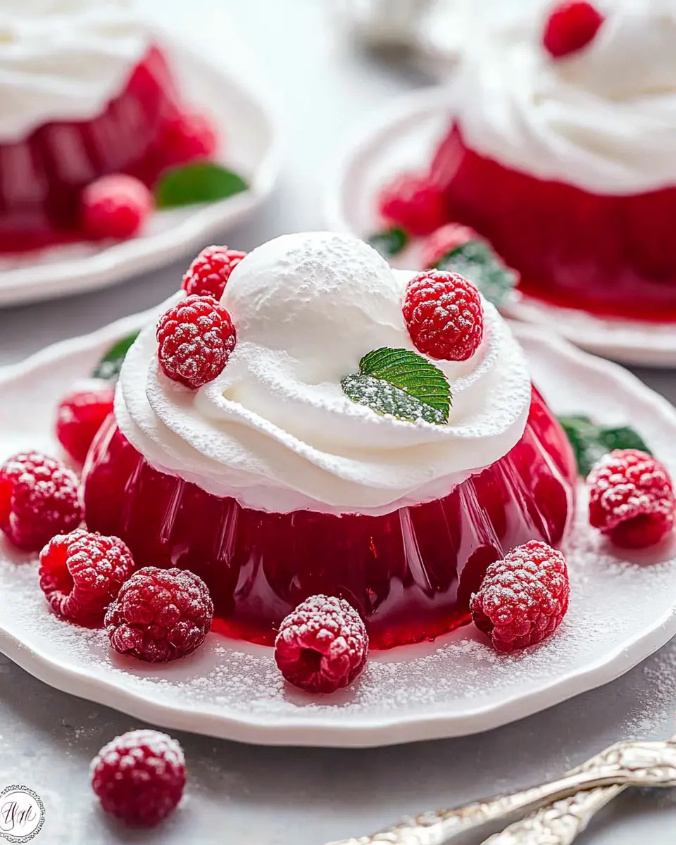 Fresh Raspberries (1 cup): These juicy berries not only add a burst of flavor but also serve as a beautiful garnish. Their tartness complements the sweetness of the Jello and cream, making each bite refreshing and delicious.