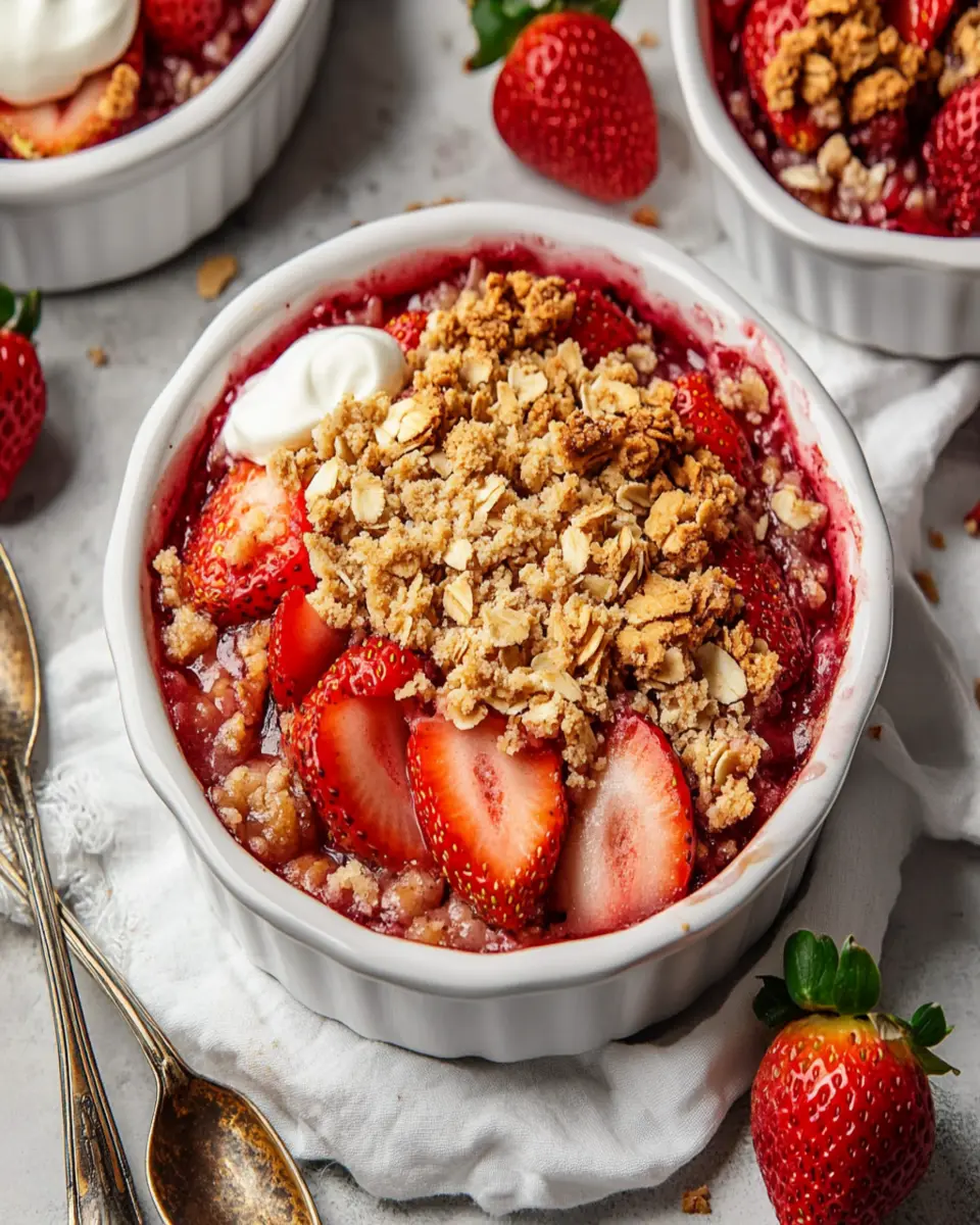 Fresh strawberries are the star of this dessert, providing a burst of sweetness and vibrant color. Their natural juiciness complements the crisp topping beautifully, making each bite a delicious treat.