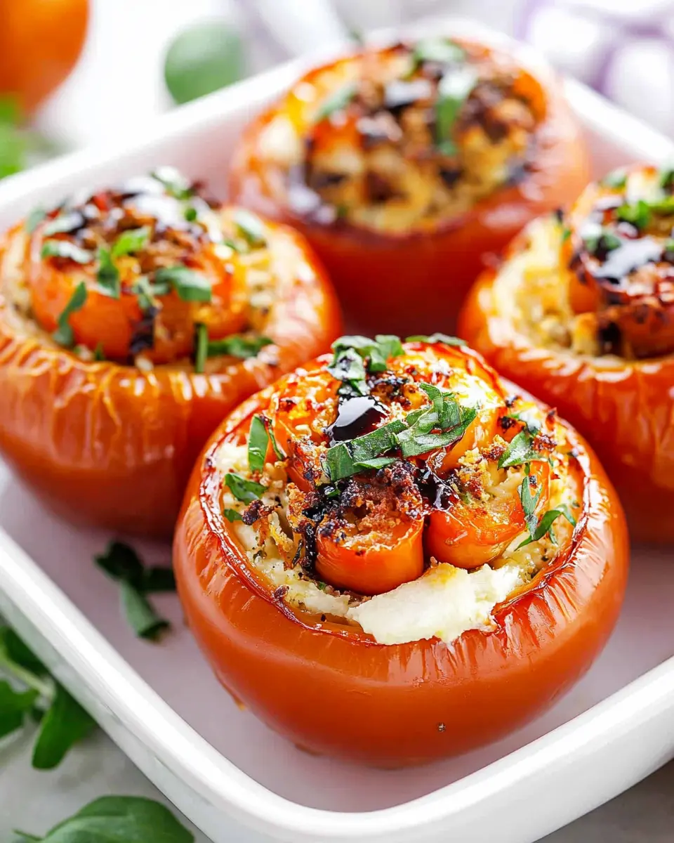 Absolutely! Stuffed tomatoes can be prepared ahead of time. After stuffing them, simply cover and refrigerate until you’re ready to bake. This makes them a convenient option for meal prep or entertaining.