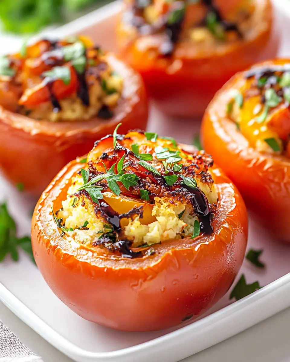 In a world where fast food often takes precedence, stuffed tomatoes offer a healthier alternative. This dish is not only vegetarian but also gluten-free, appealing to a wide range of dietary preferences. Packed with nutritional benefits, each serving provides essential vitamins and minerals, making it a guilt-free indulgence.