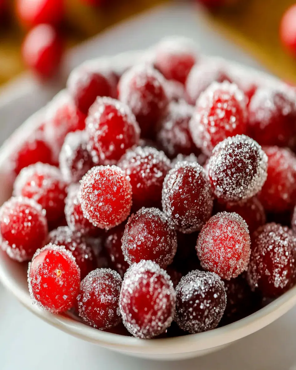 Delicious and festive sugared cranberries that add a touch of sweetness to any holiday dish.