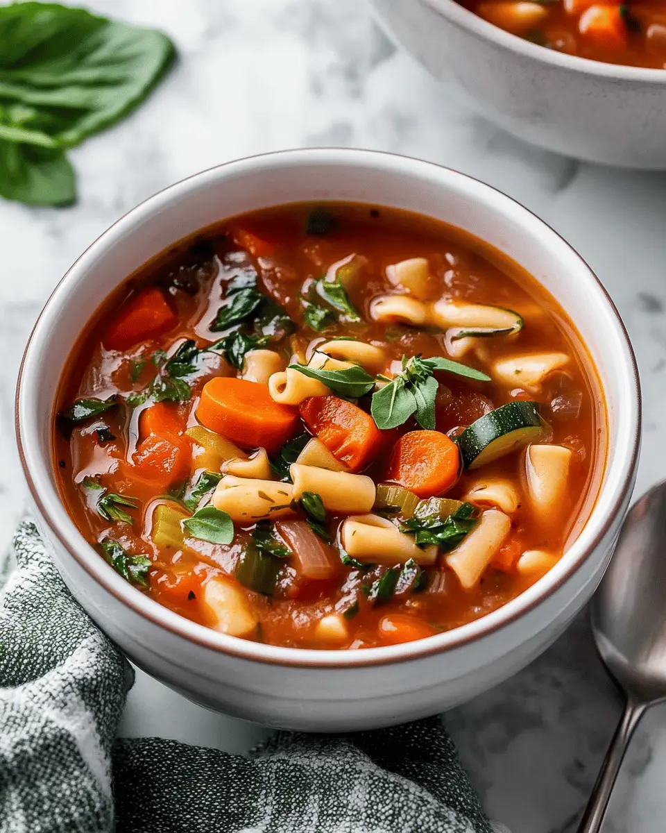 In summary, Thick & Hearty Minestrone Soup is the ultimate comfort food, perfect for chilly days and busy lifestyles. Packed with nutritious vegetables, protein-rich beans, and satisfying pasta, this soup not only warms your body but also nourishes your soul.