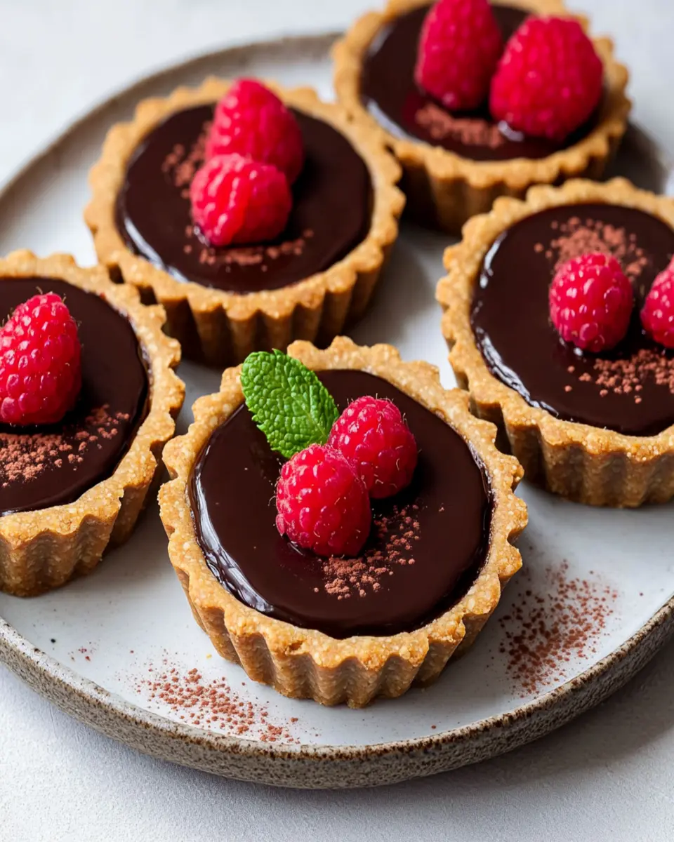 To achieve a perfectly baked crust for your Vegan Chocolate Raspberry Tarts, ensure that the almond flour and cocoa powder are well mixed before adding the wet ingredients. This helps create an even texture and flavor throughout. Pressing the dough firmly into the tart pans will also ensure that they hold their shape during baking.